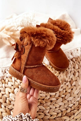Dziecięce Ocieplane Botki Z Kokardkami Śniegowce Khaki Funky