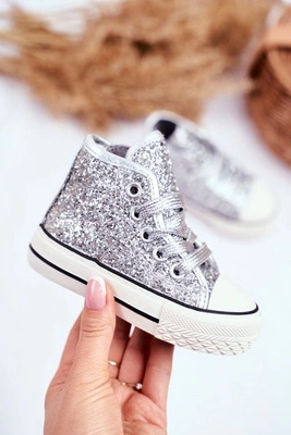 Dziecięce Brokatowe Trampki Srebrne Ally