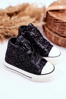 Dziecięce Brokatowe Trampki Czarne Ally