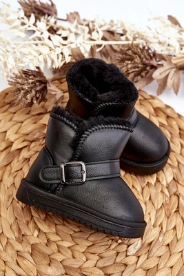 Dziecięce Eko Skórzane Śniegowce Z Paskiem Czarne Orinor