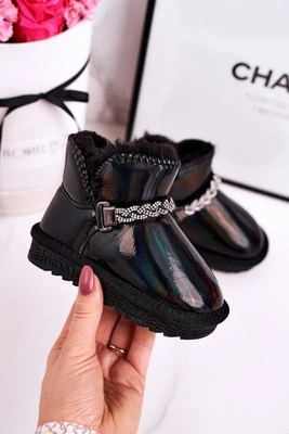 Dziecięce Botki Z Łańcuchem Ocieplone Futerkiem Lakierowane Czarne Dolly