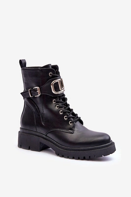 Damskie Masywne Botki Workery z Dżetami Czarne Tyralis