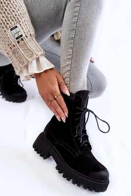 Damskie Zamszowe Botki Wiązane Czarne Lemar Marianne
