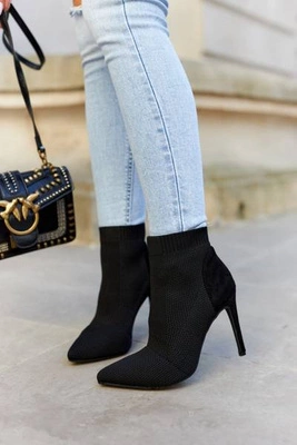 Ażurowe Wiosenne Damskie Botki Czarne Royale