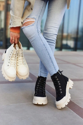 Damskie Wiosenne Botki Trapery Jasnobeżowe Larina