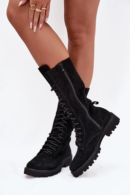 Ocieplane Botki Sztyblety Damskie Na Platformie Czarne Ismira