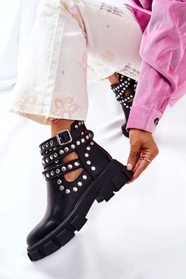 Botki Damskie Workery Z Ćwiekami Czarne Eveis