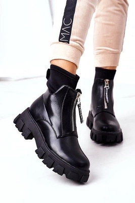 Damskie Botki Workery Na Platformie Czarne Cosmic Love