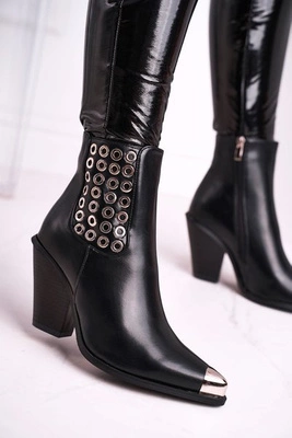 Botki Damskie Na Słupku Ciepłe Kowbojki Czarne Athens