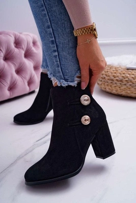 Botki Damskie Na Słupku Ciepłe Zamszowe M319 Czarne Midway