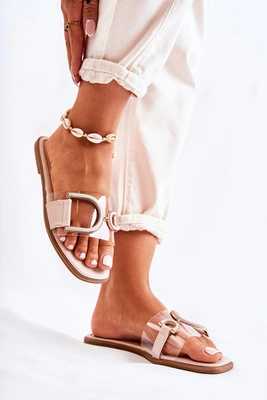 Skórzane Damskie Klapki Nicole 2735 Beżowe