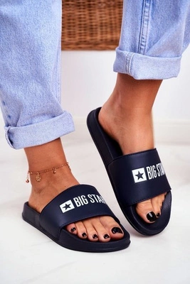 +1Klapki Damskie Japonki Big Star na Koturnie Granatowe FF274A301