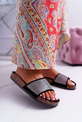 Damskie Klapki Na Korku Z Kryształkami Czarne Do It!