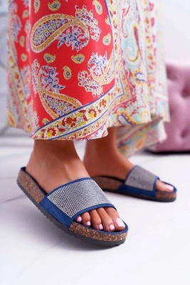 +3Damskie Klapki Na Korku Z Kryształkami Granatowe Do It!