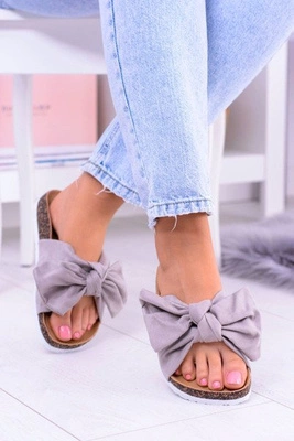 Damskie Szare Klapki Na Korku Kokarda Dominica