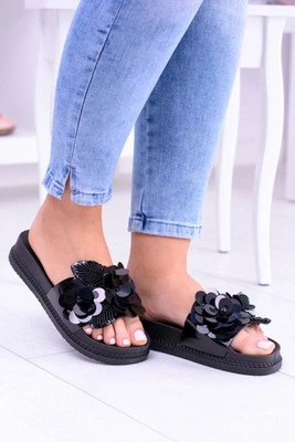 Czarne Klapki Damskie Z Kwiatkami Lu Boo Bouquet