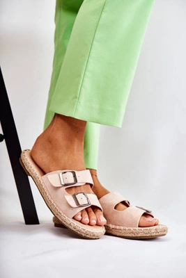 Klasyczne Zamszowe Klapki Damskie Beżowe Casilda