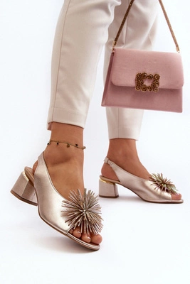 +1Skórzane Sandały Z Ozdobą Laura Messi 2719 Złote