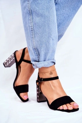 Klasyczne Zamszowe Sandały Na Słupku Laura Messi 1760 Czarne