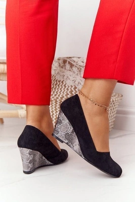 Zamszowe Czółenka Na Koturnie Sergio Leone PB767 Czarne