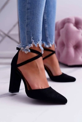 Czółenka Damskie Na Słupku W Szpic Czarne High Traffic