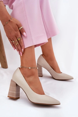 Skórzane Czółenka Na Słupku Beżowe Gregosa