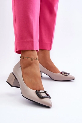 Czółenka Na Niskim Obcasie Klocku Z Ozdobą Beżowe Dolvira