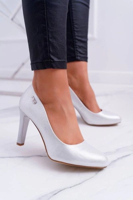Czółenka Damskie Na Słupku Sergio Leone 1457 Srebrne Campbell