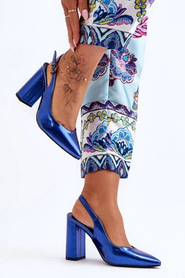 Klasyczne Czółenka W Szpic Na Słupku Niebieskie My Love