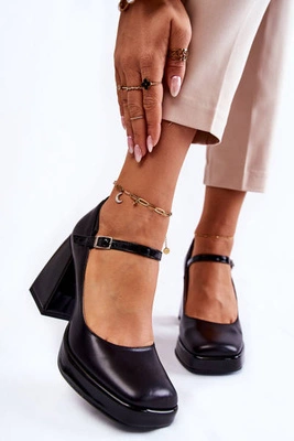 Skórzane Czółenka Na Platformie I Słupku Lewski Shoes 3197 Czarne