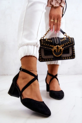 Czółenka Zamszowe Na Słupku Czarne Abbey