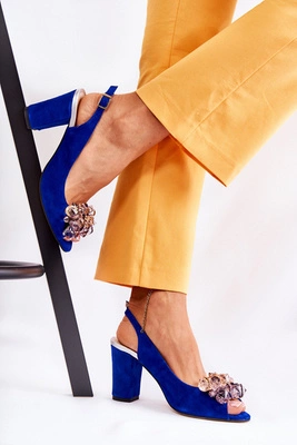 +3Czółenka Zamszowe Na Słupku Niebieskie Abbey