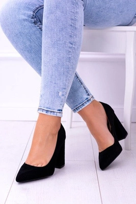 Zamszowe Czarne Czółenka na Słupku Harinta