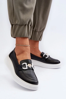 Skórzane Mokasyny Damskie Na Platformie Czarne S.Barski LR720