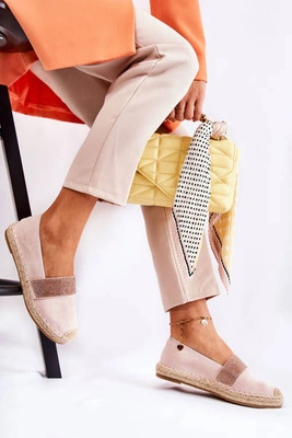 Damskie Materiałowe Espadryle Z Cyrkoniami Różowe Deimos