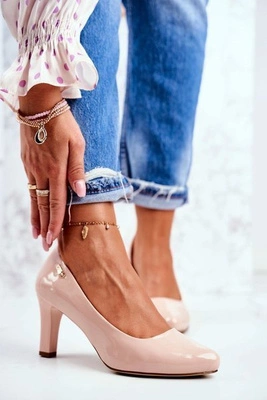 Czółenka damskie Sergio Leone Lakierowane Na Słupku Nude Orsola
