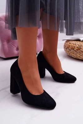 Klapki Damskie Eleganckie Na Klocku Zamszowe Czarne Valencia