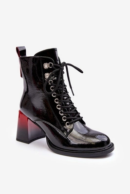 Lakierowane Damskie Botki Workery Sznurowane Czarne S.Barski MR870-72