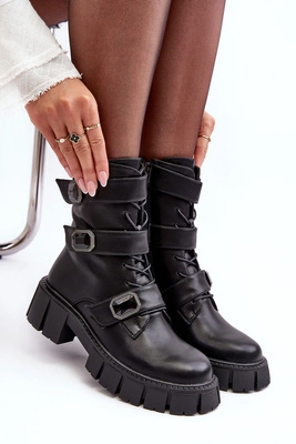 Workery Botki Damskie Skórzane Czarne S.Barski MR870-62