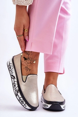 +1Damskie Skórzane Tenisówki Slip-On Złote Ottavia