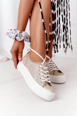 Brokatowe Tenisówki Na Platformie Złote Luna