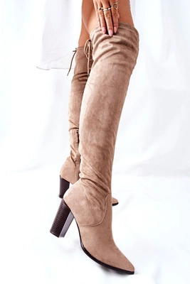 Zamszowe Damskie Botki Ocieplane Beżowe Janice