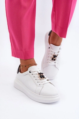 Skórzane Sneakersy Damskie Z Misiem Białe Mirven