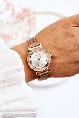 Damskie Zegarek Na Bransolecie Z Cyrkoniami ERNEST Różowe Złoto