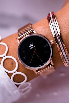 Damski Zegarek z Bransoletą Złoty Róż Czarny