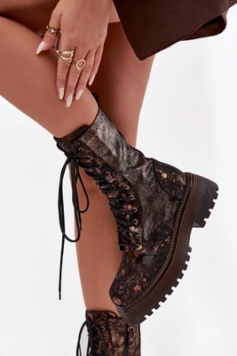 Skórzane Botki Na Masywnej Platformie Maciejka 06309-32 Metaliczny Brąz
