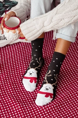 Świąteczne Damskie Skarpetki Renifery Czarne