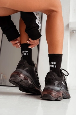 Skarpetki Damskie Z Napisem Keep Smile Czarne