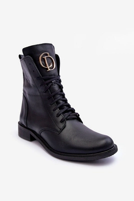 Sznurowane Skórzane Botki Z Ozdobą Czarne Nicole 2750