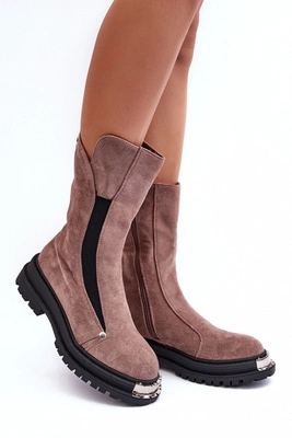 Zamszowe Wysokie Botki Workery Z Paskami Ciemnobeżowe Elnatea